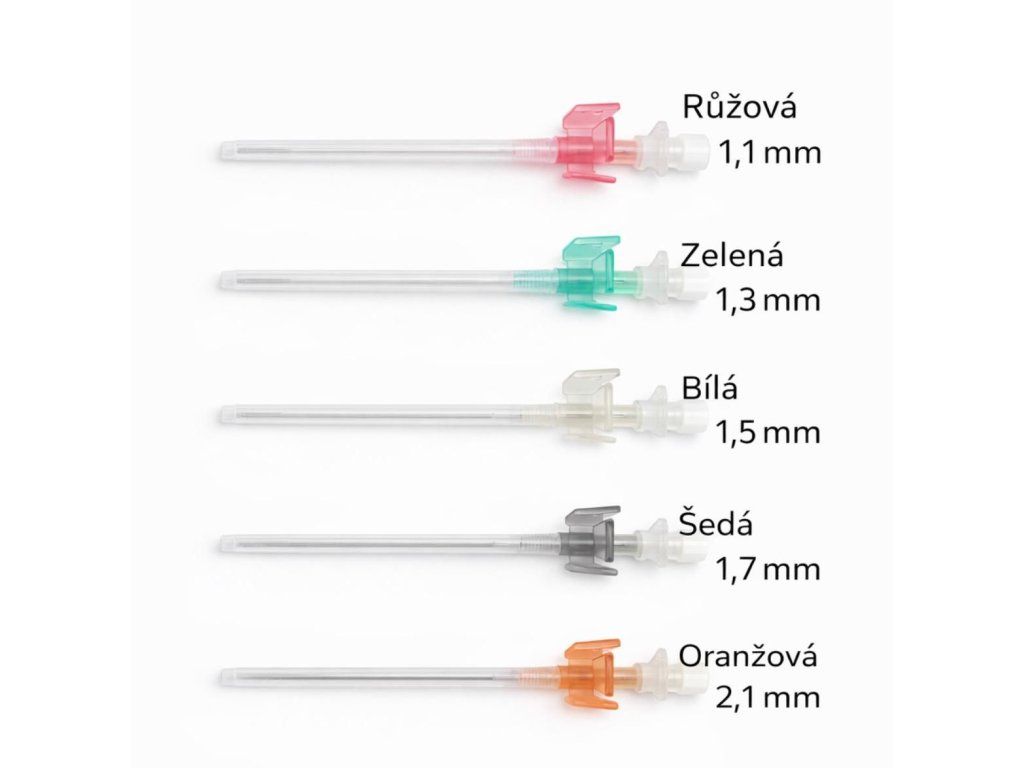 Barevné rozlišení jednotlivých velikostí (14G, 16G, 18G, 20G, 22G) zjednodušuje výběr správné kanyly bez zdržení. Ideální pro provozy s vysokou frekvencí aplikací, kde rozhoduje rychlost a přesnost.