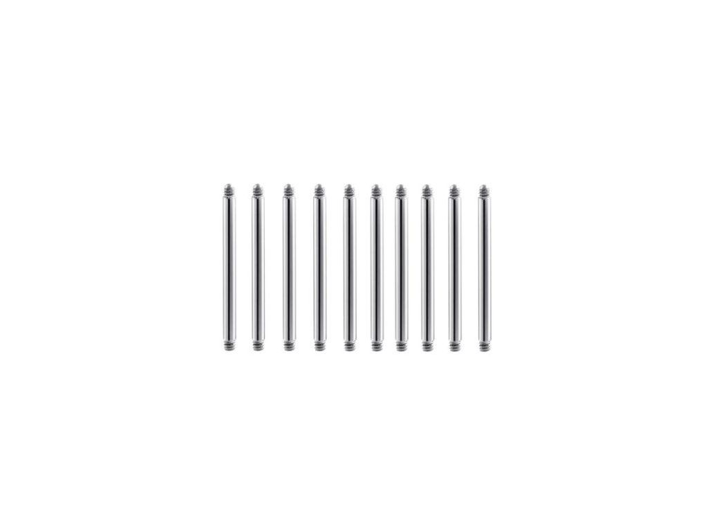 Rovná ocelová tyčinka 1,6 mm je základní komponent určený pro profesionální použití v piercingových studiích. Slouží jako náhradní nebo montážní díl pro činky, podkovy i další závitové šperky. Ideální skladová položka pro studia, která potřebují široký rozsah délek pro různé typy piercingu.