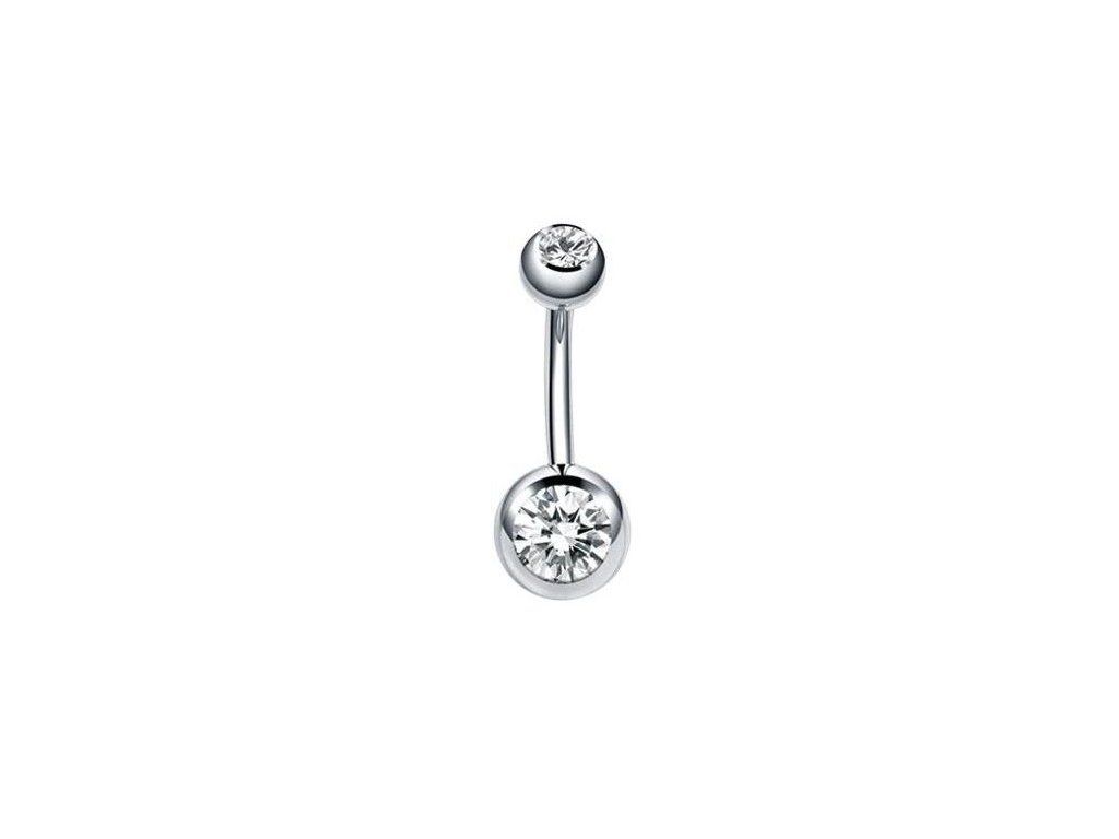 Ocelový piercing do pupíku double kamínek čirý