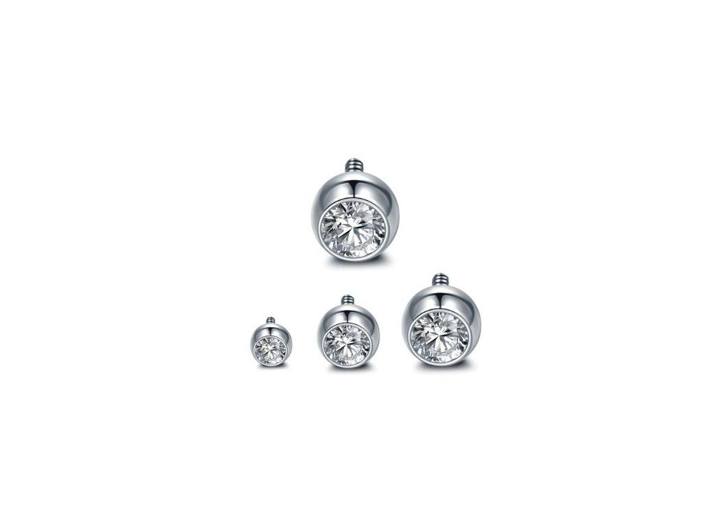 Titanová kulička s vnitřním závitem a čirým kamínkem komponent 1,2mm