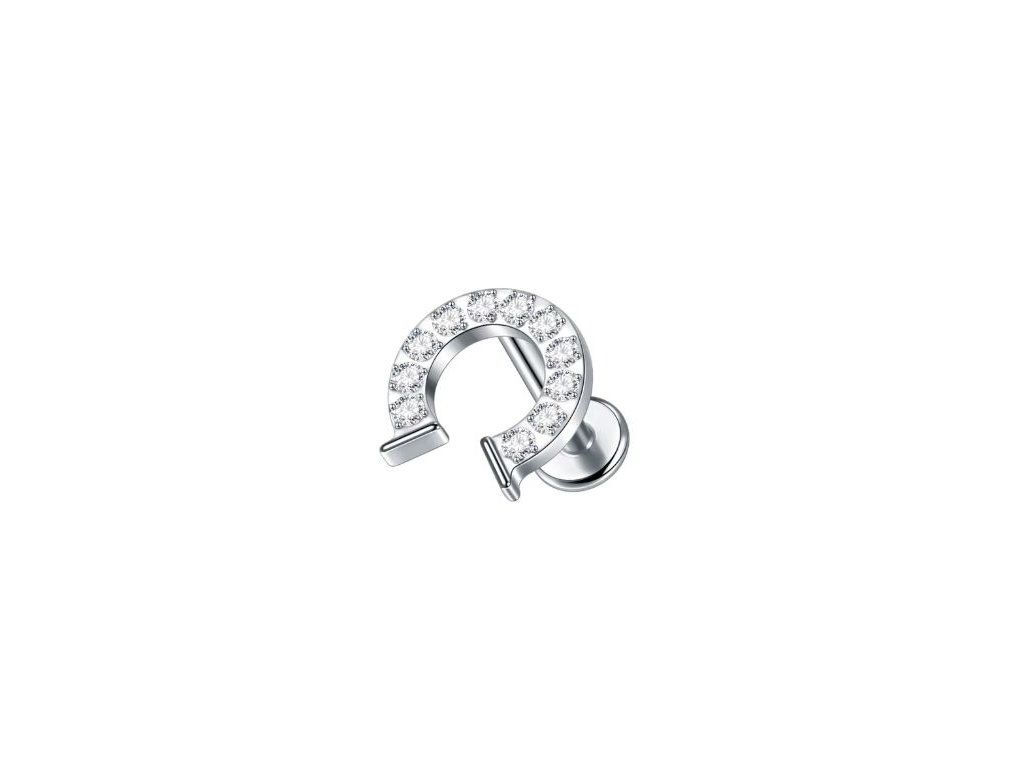 Dekorativní labreta ve tvaru podkovy s kamínky představuje kombinaci klasického piercingového symbolu a jemného lesku. Design je dostatečně výrazný, aby zaujal ve vitríně, ale zároveň působí profesionálně a nositelně pro každodenní aplikace. Tento model je ideální pro studia, která chtějí nabídnout tematický šperk bez přehnané zdobnosti.