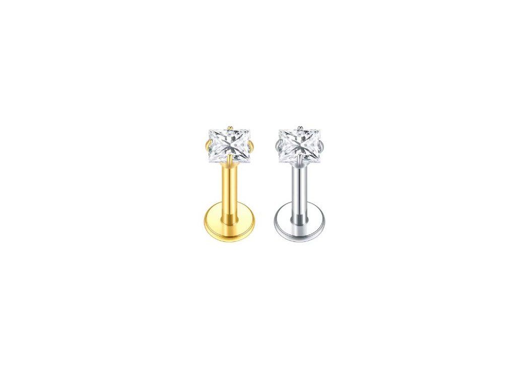 Titanová labreta s kamínkem ve tvaru čtverečku