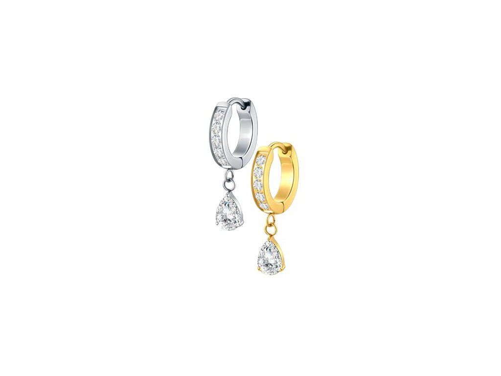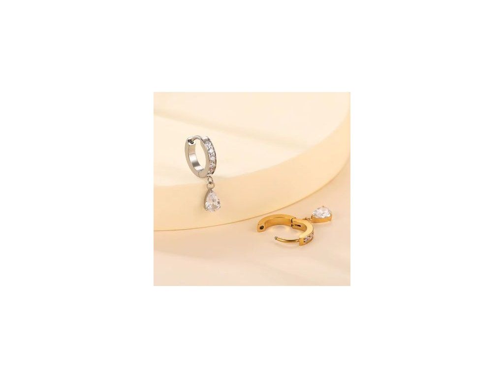 Visící kamínek ve tvaru slzičky přidává šperku dynamiku a jemný luxusní akcent, který osloví klientky hledající výraznější, ale stále elegantní řešení.