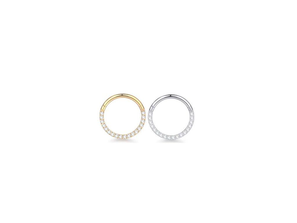 Otevírací segment s přední řadou čirých kamínků představuje elegantní řešení pro klienty, kteří chtějí výrazný lesk bez přidaných ozdobných prvků po obvodu. Kamínky jsou umístěny pouze z přední strany, což umožňuje čistý vzhled při zachování komfortu nošení.