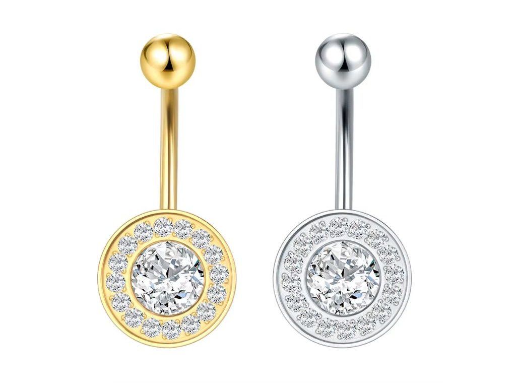 Titanový piercing do pupíku diamant s kamínky – Titan G23