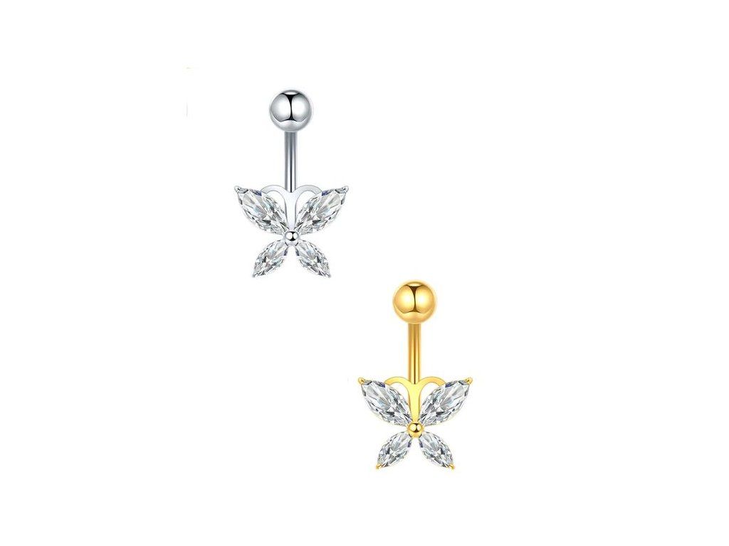 Titanový piercing do pupíku s ozdobou motýlka menší