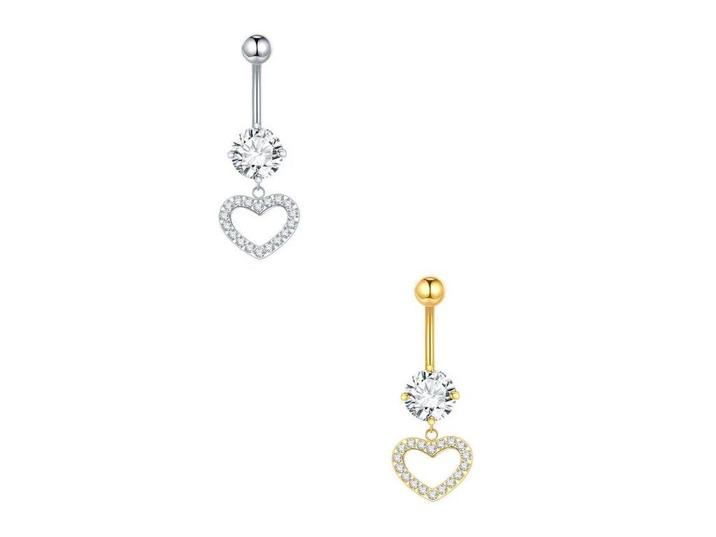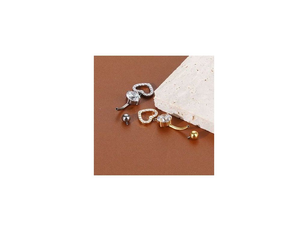 Motiv srdíčka patří mezi stálice v nabídce pupíkových piercingů a oslovuje široké spektrum klientek. Díky visícímu designu působí šperk luxusněji než základní modely, čímž rozšiřuje sortiment o vizuálně výraznou variantu s vyšší prodejní hodnotou.