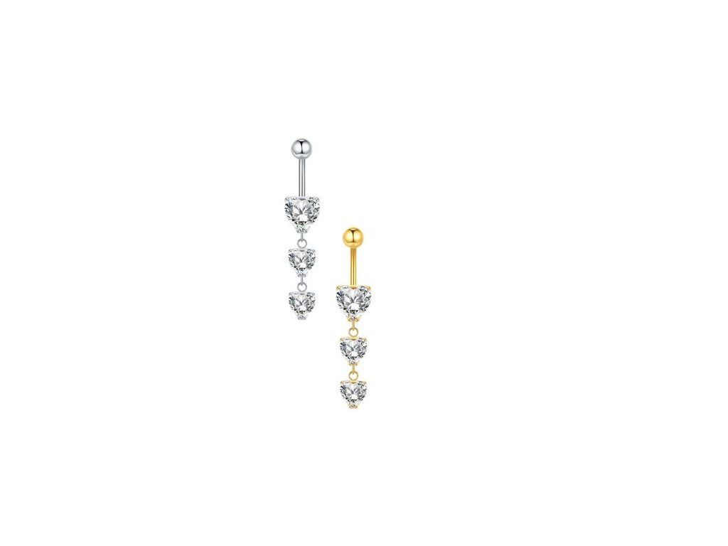 Spodní část tvoří dvě zavěšená srdíčka, která prodlužují siluetu šperku a vytváří výraznější šperkový dojem. Celková délka pupíkového piercingu činí 42 mm, což zajišťuje dominantní, ale stále elegantní vzhled.